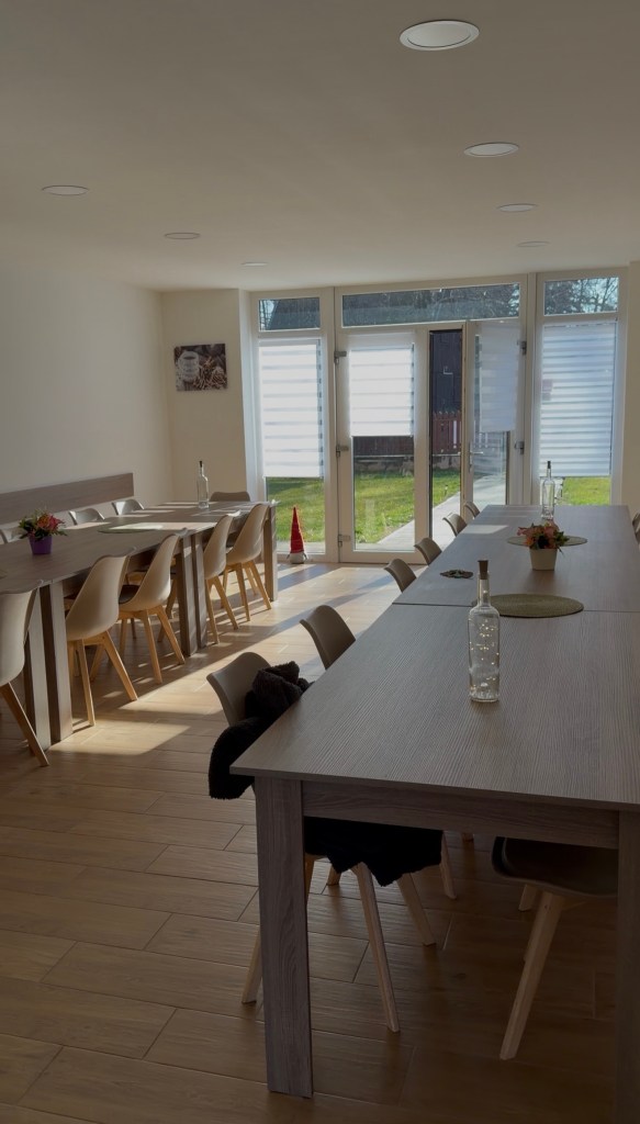 Rendelkezésre áll egy rendezvényterem, amely 24–26 fős társaságok számára bérelhető, felszerelt konyhával és minden szükséges eszközzel a zavartalan programokhoz, összejövetelekhez.